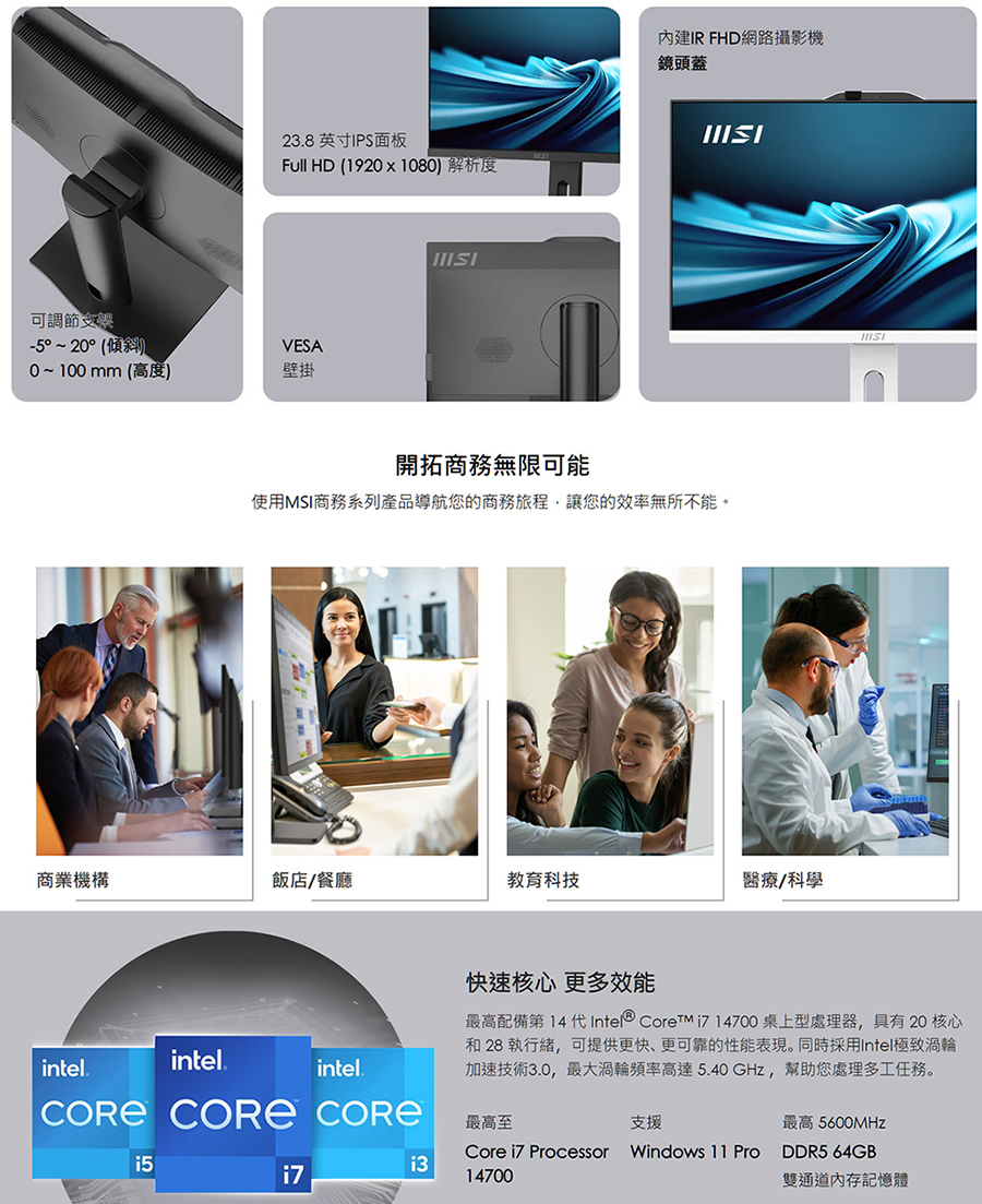 微星MSI PRO AP242P AIO液晶電腦特仕機 (i5-14400/32G/1TB/W11P)