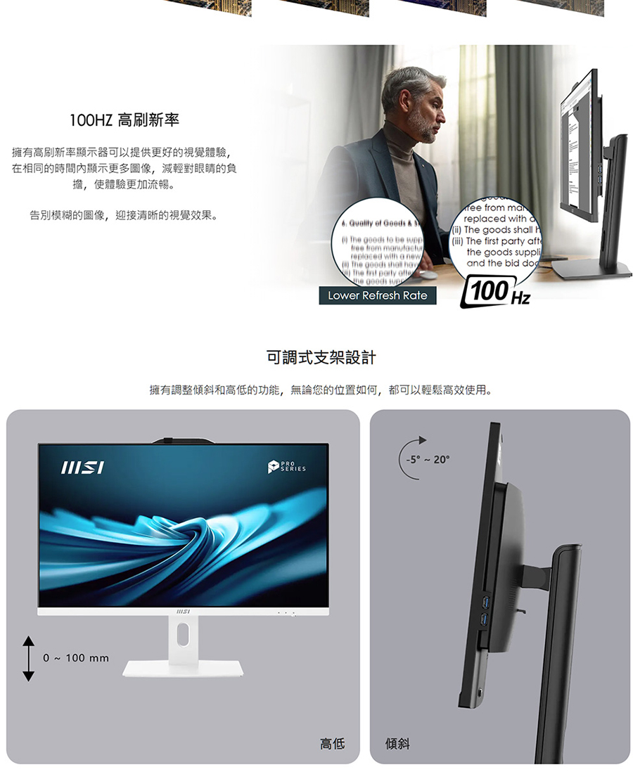 螢幕規格23.8" IPS Grade Panel LED Backlight (1920*1080 FHD) with MSI Anti-Flicker technology