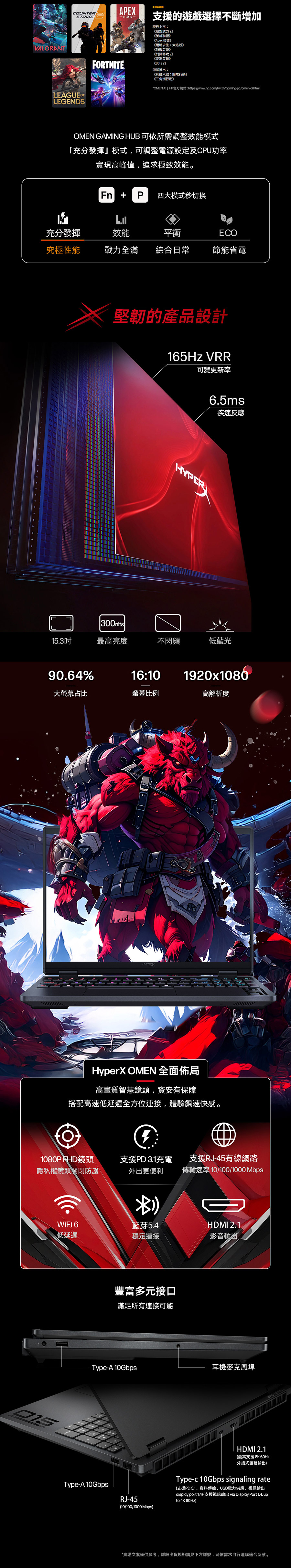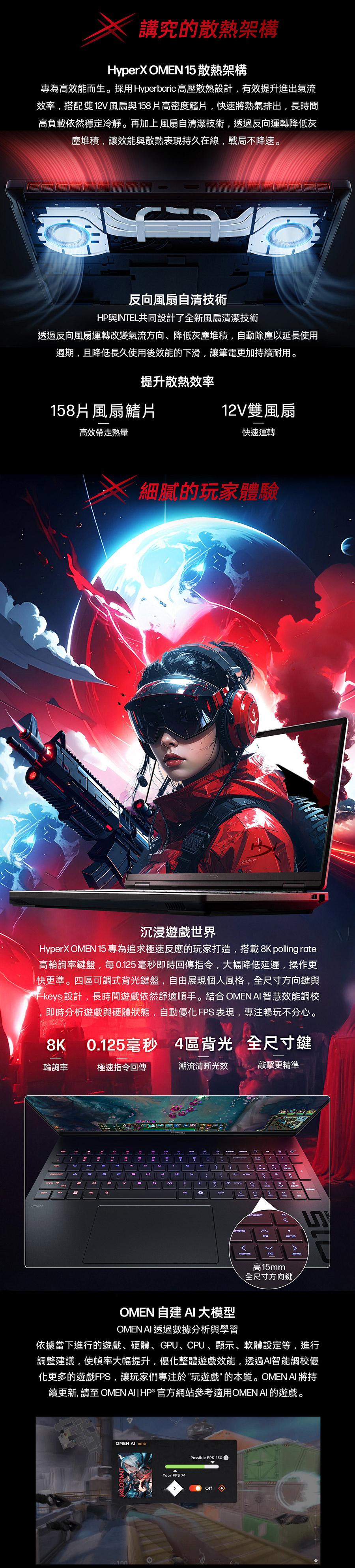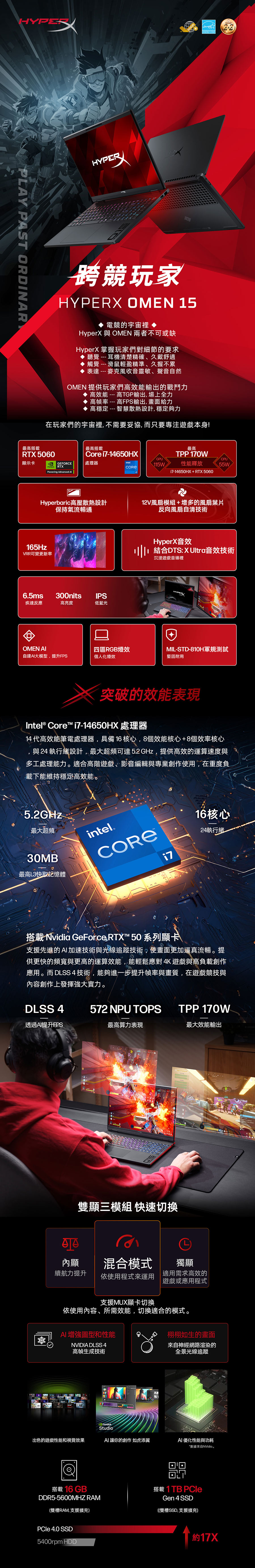 惠普 HP HyperX OMEN AI電競筆電 15.3" (i7-14650HX/16G/1T/RTX5060-8G/W11)