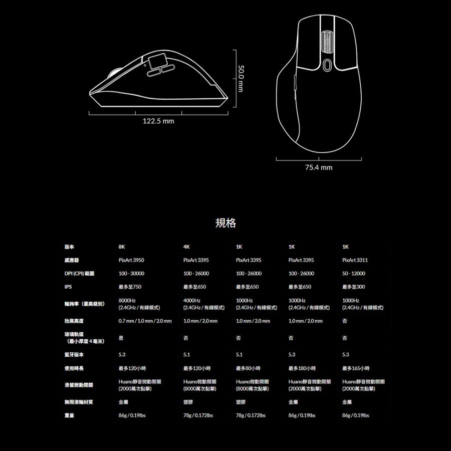 • 金屬滾輪、靜音微動按鍵