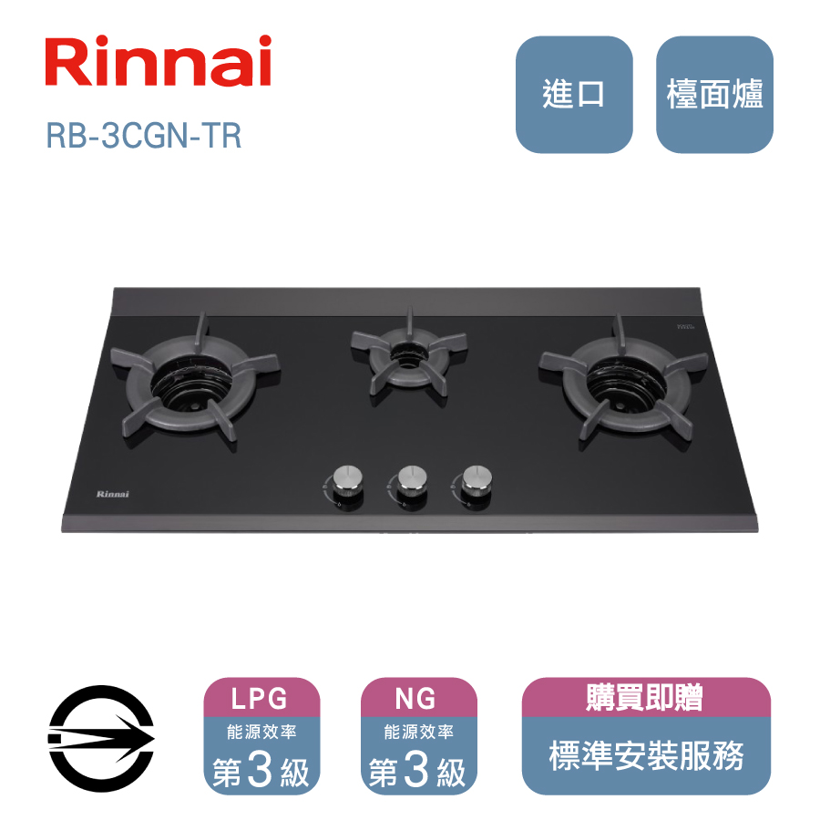 林內進口瓦斯爐(LPG)三口玻璃內焰檯面爐