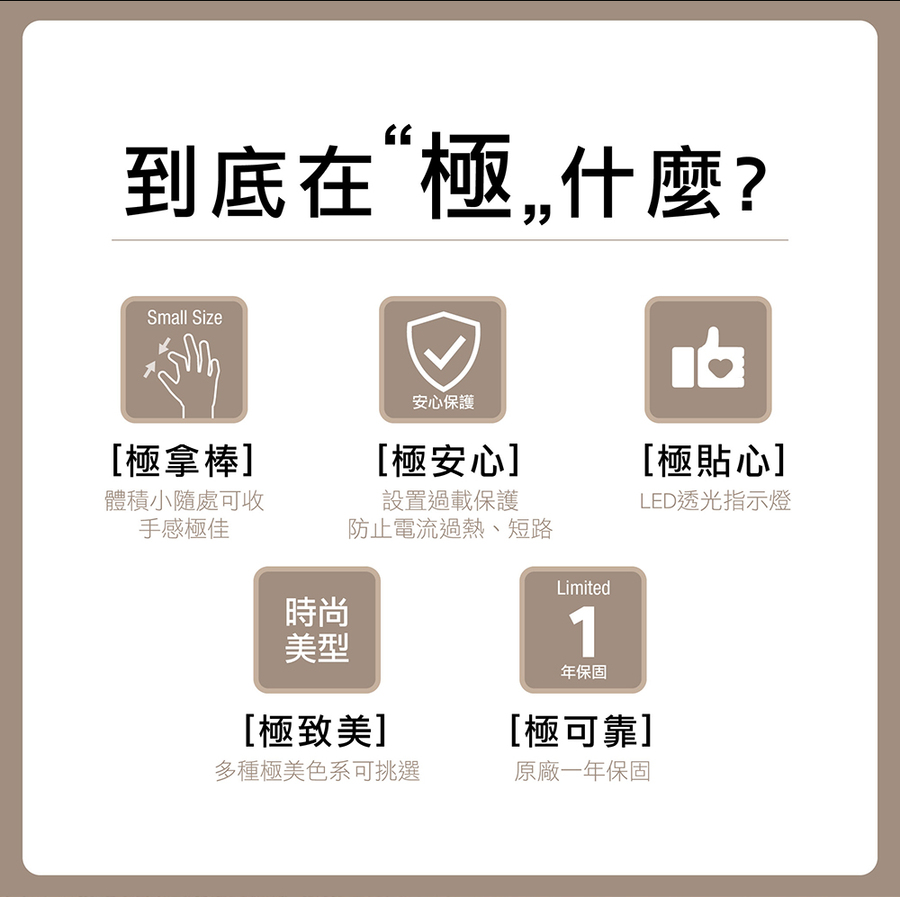 +886 6切6座3孔過載保護延長線-1.8M(奶茶) - 主要圖片
