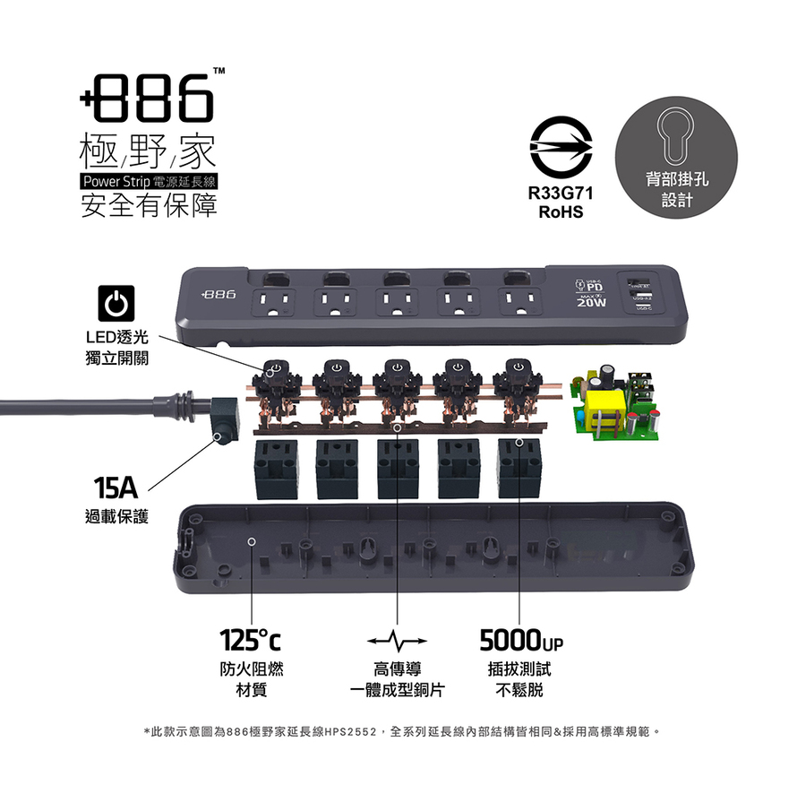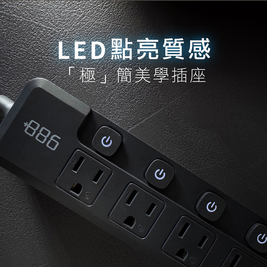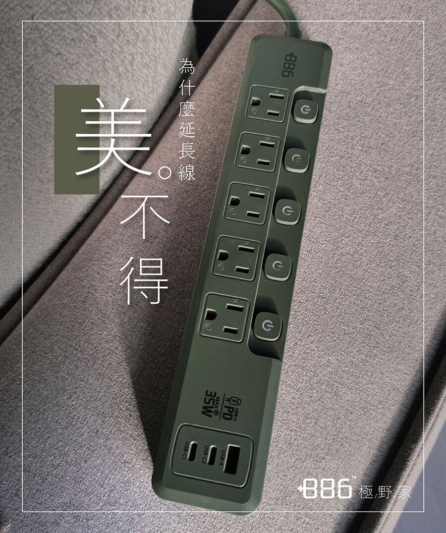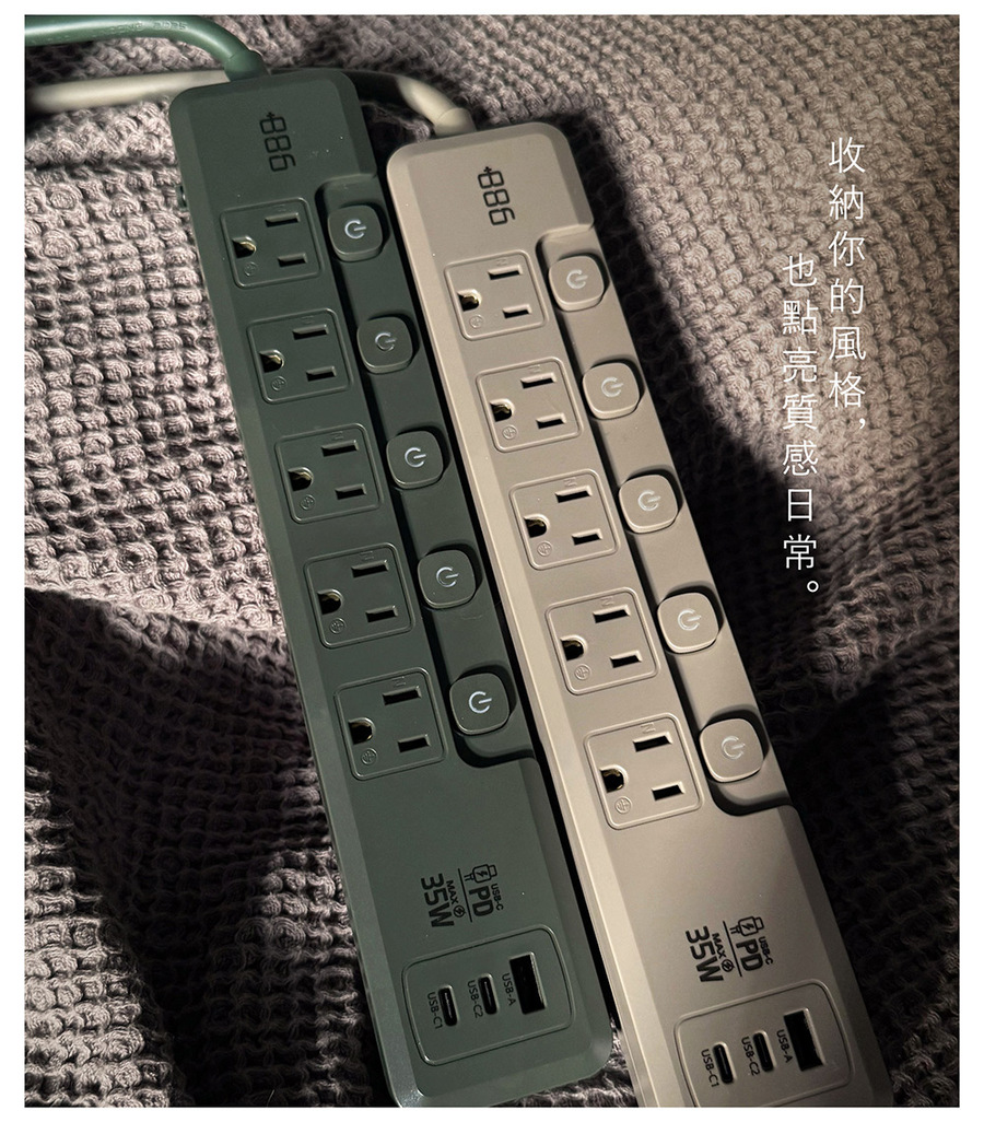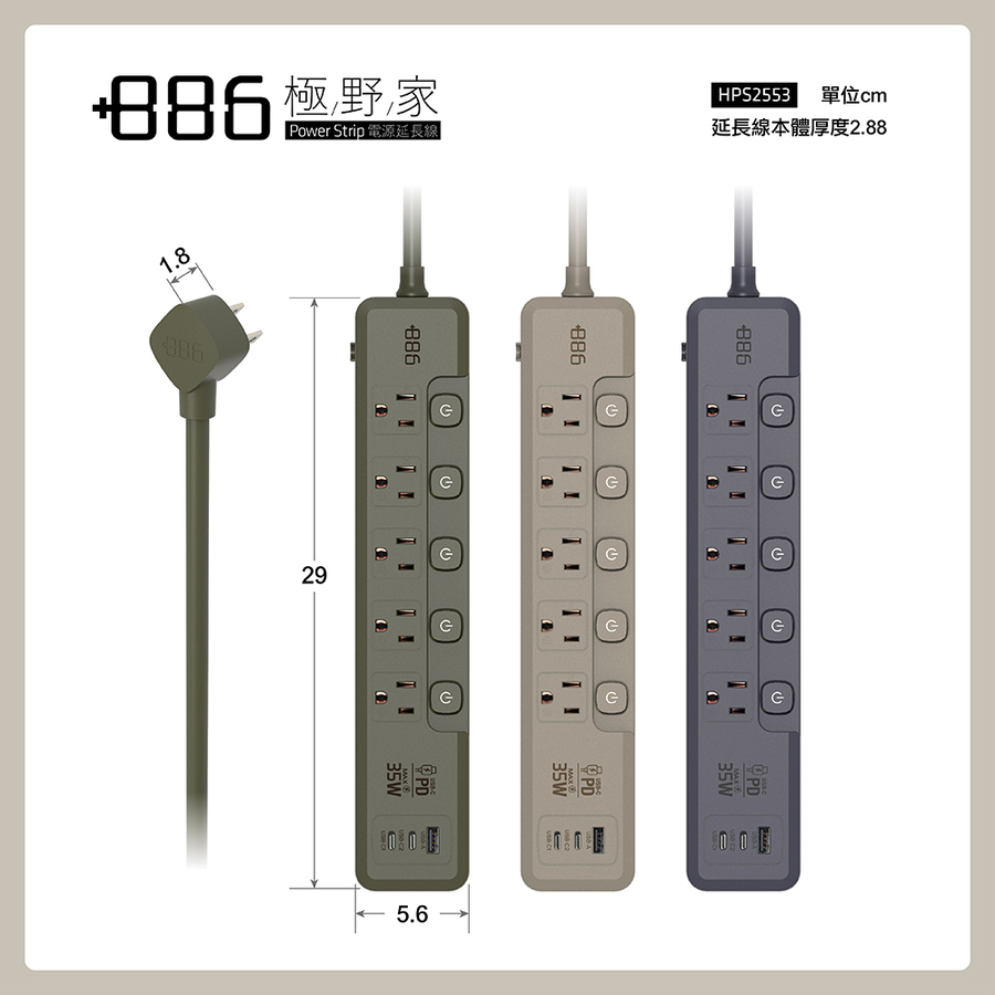 +886 5切5座3孔1A2C 35W延長線-1.8M(霧灰)