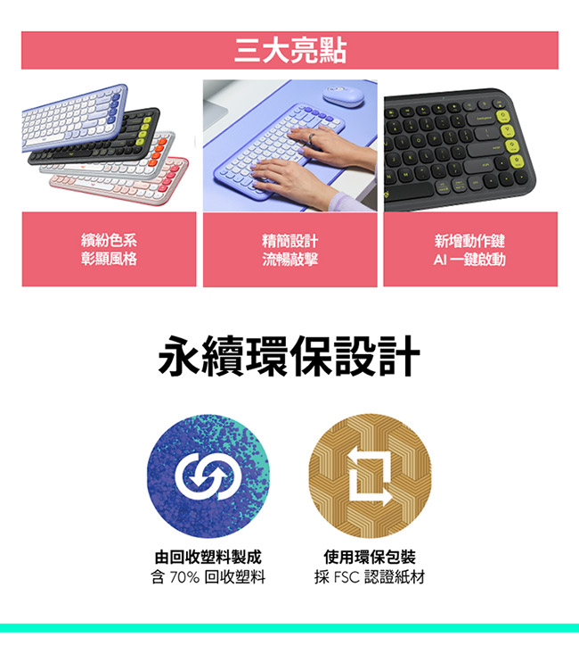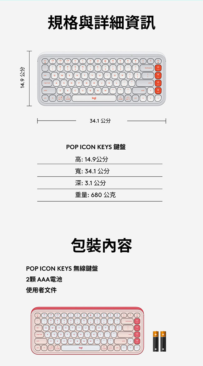 羅技 Logitech POP Icon Keys無線鍵盤-時尚白
