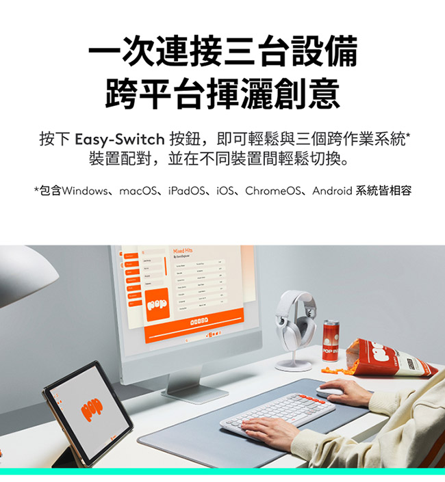 羅技 Logitech POP Icon Keys無線鍵盤-時尚白 - 主要圖片