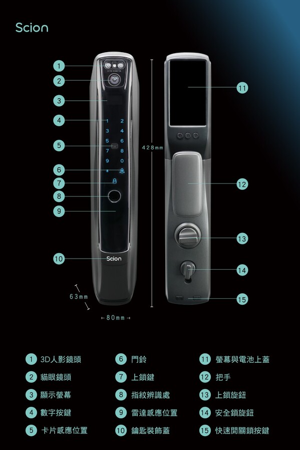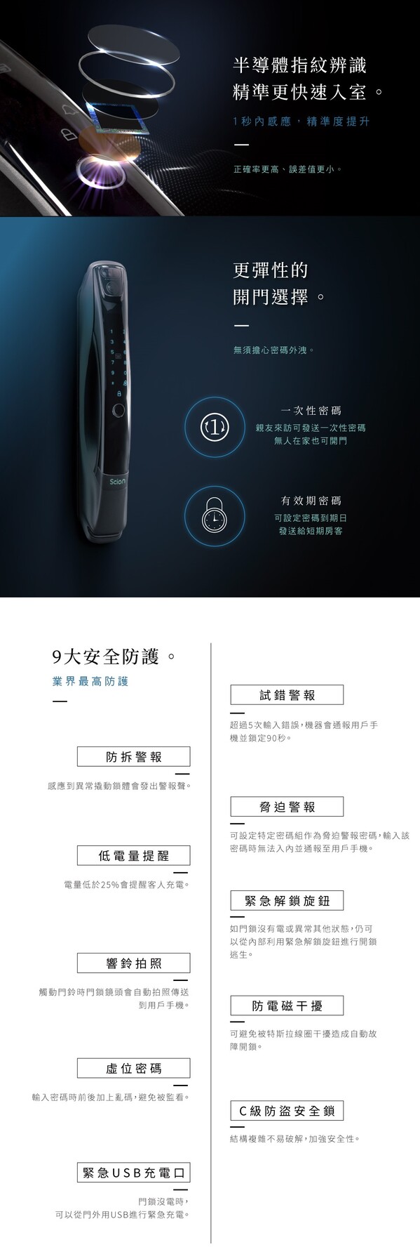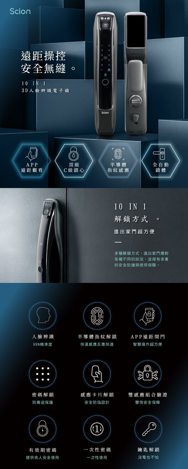 SCION 10合1 3D人臉辨識電子鎖 - 主要圖片
