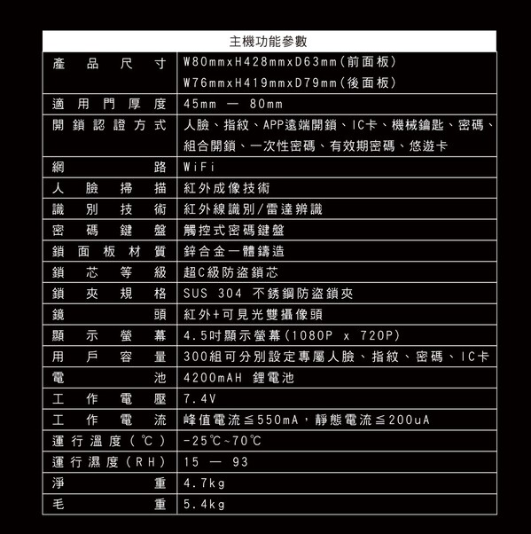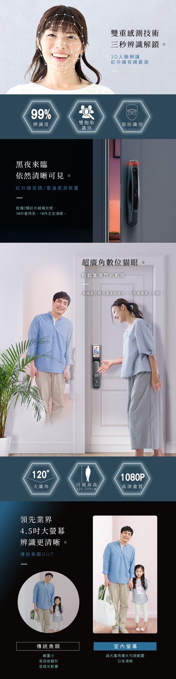 • 120°廣角電子貓眼,即時抓拍傳送影像