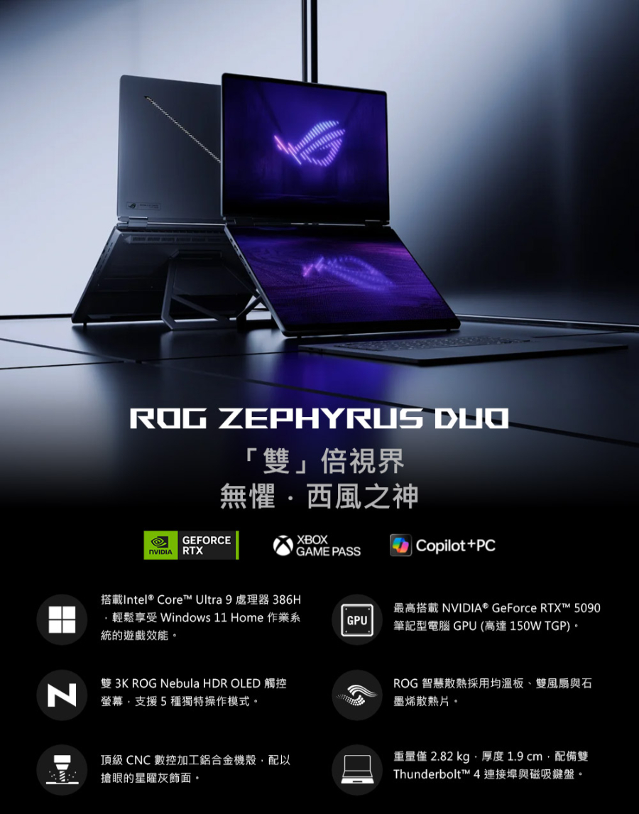 ROG OLED AI雙螢幕觸控電競筆電 16" (Intel Core Ultra9-386H/64G/2T/GeForce RTX 5090/W11)