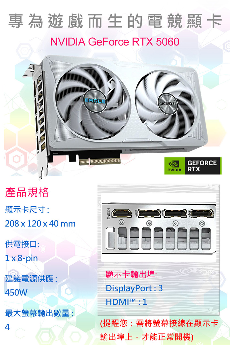 顯示卡:技嘉 GeForce RTX 5060 EAGLE OC ICE 8G 顯示卡