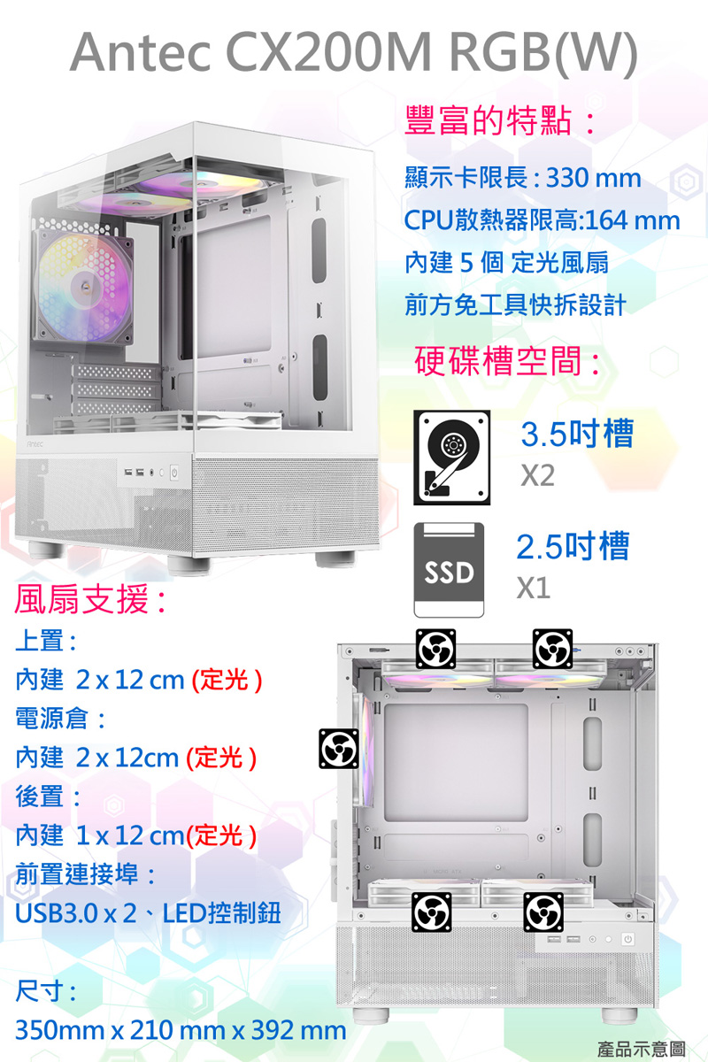 機殼:Antec CX200M RGB M-ATX電腦機殼(白)