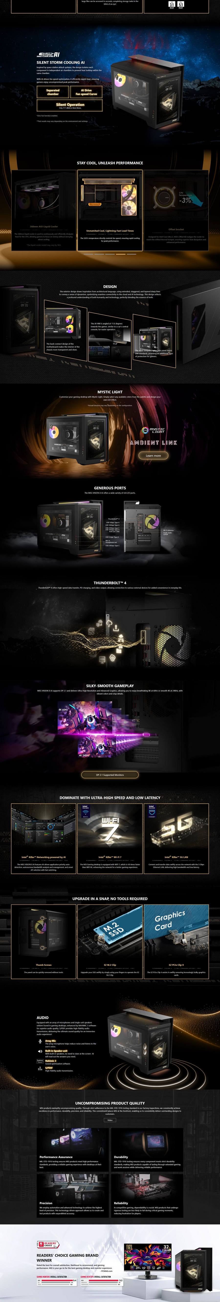 搭載第15代Intel Core Ultra 9 285K 處理器 搭載GeForce RTX 5090 VENTUS 3X 32G 顯示卡 AI HMI - 觸控螢幕提供直覺的操作,並與 MSI 獨家的 AI 應用程式同步,以增強 AI 功能 AI電競桌面 - AI 驅動冷卻、遊戲和遊戲串流強化功能 Frozr AI散熱設計- 透過 AI 演算法調整風扇轉速來優化氣流 Silent Storm Cooling 2 - 透過分離室優化氣流散熱 內建360mm一體式(AIO)水冷散熱器 PCIe 5.0 SSD - 數秒內載入遊戲 Mystic Light RGB 燈效設計 符合EMI標準的透明側板設計 NVIDIA Studio認證 - 為創作者預裝Studio驅動程式和專用工具