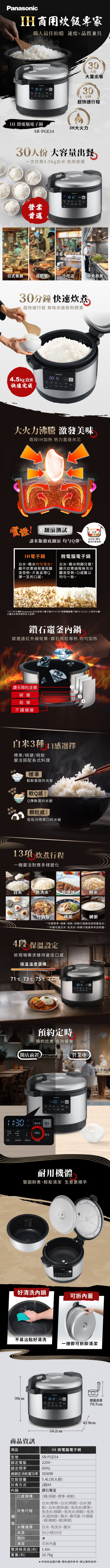 * 電壓頻率:AC 220 V / 60 Hz * 消耗電功率:3,600W * 產品容量5.4L