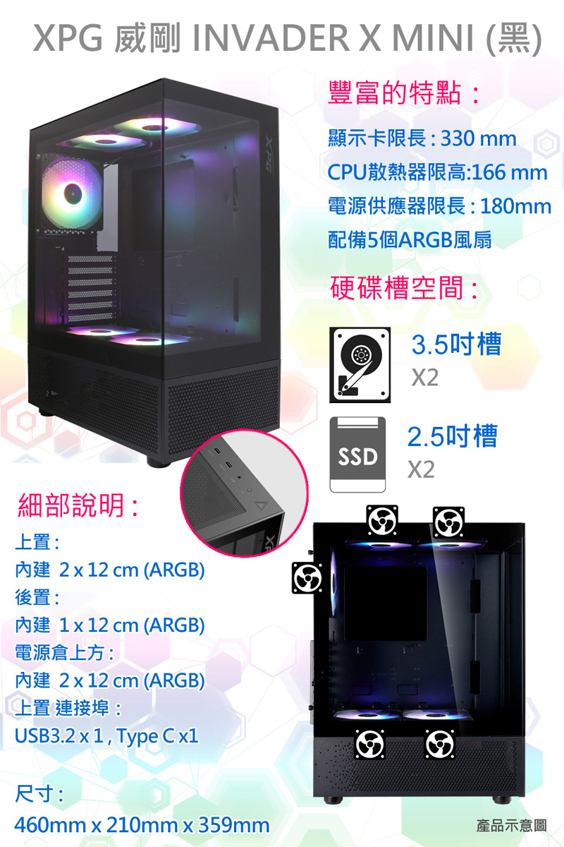 機殼:XPG威剛 INVADER X MINI 電競機殼(黑)