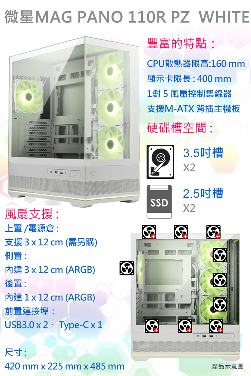 機殼:微星 MAG PANO 110R PZ WHITE 電腦機殼 (白色)