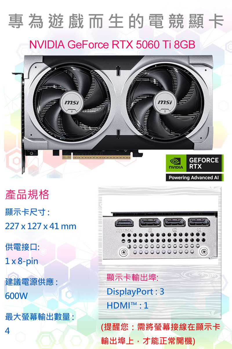 顯示卡:微星 GeForce RTX 5060 Ti 8G VENTUS 2X PLUS 顯示卡