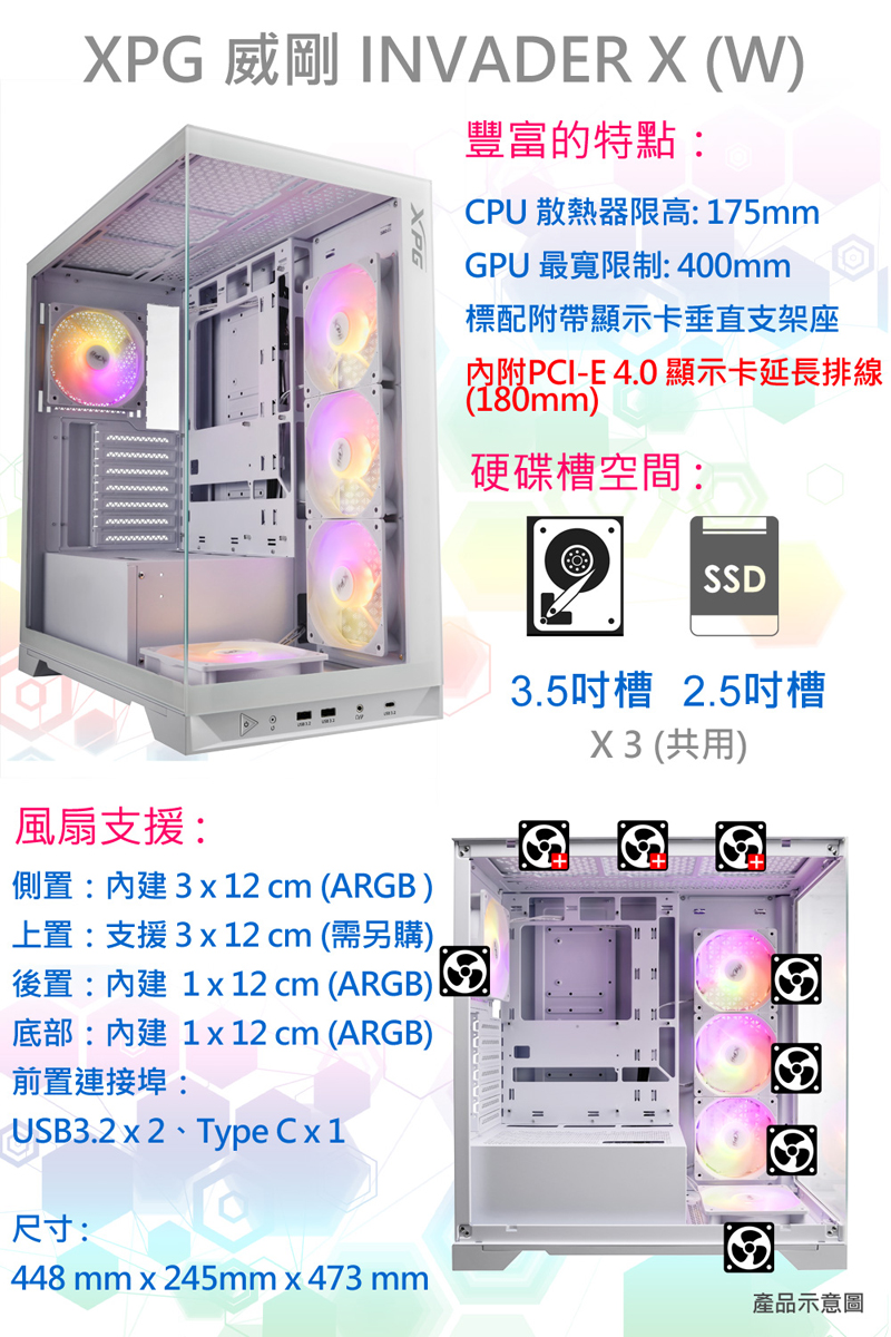 機殼:XPG威剛 INVADER X 電腦機殼(白色)