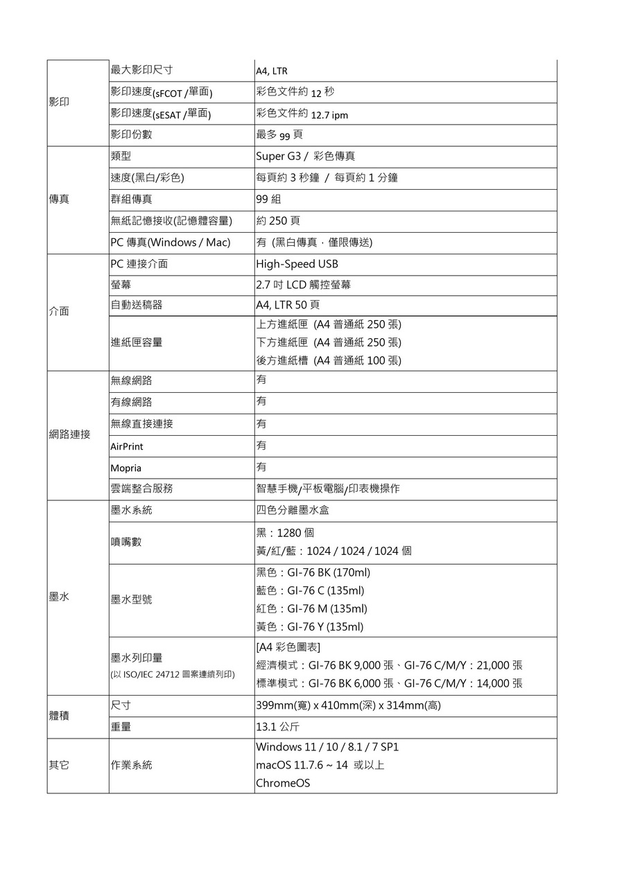 ├ 黑白連續供墨印表機