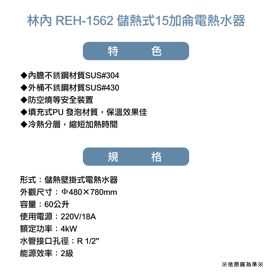 形式:儲熱壁掛式電熱水器 外觀尺寸 ΦW×H:480×780mm 容量:60公升 使用電源:220V/18A 額定功率:4kW 水管接口孔徑:R 1/2" 能源效率:2級