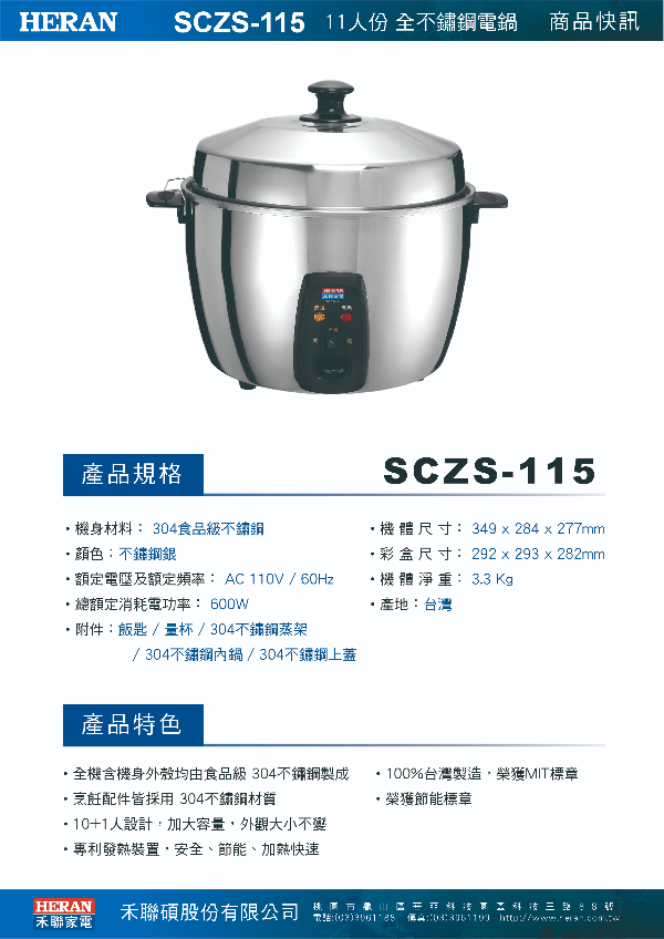 禾聯11人份全不鏽鋼電鍋(SCZS-115)