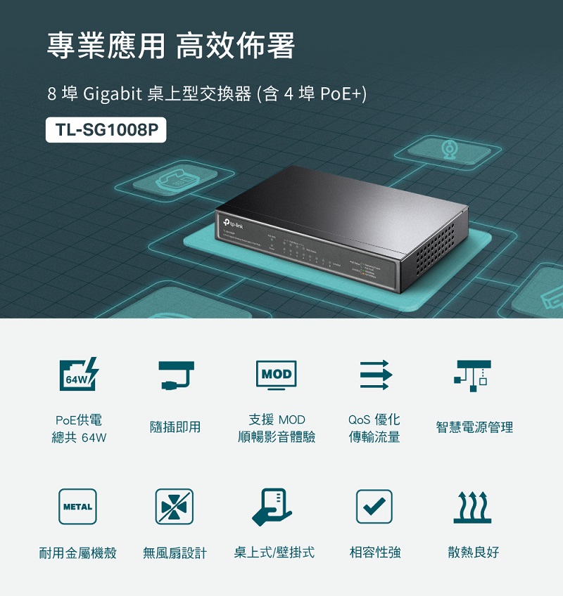 TP-LINK TL-SG1008P POE Switch交換器(TL-SG1008P)