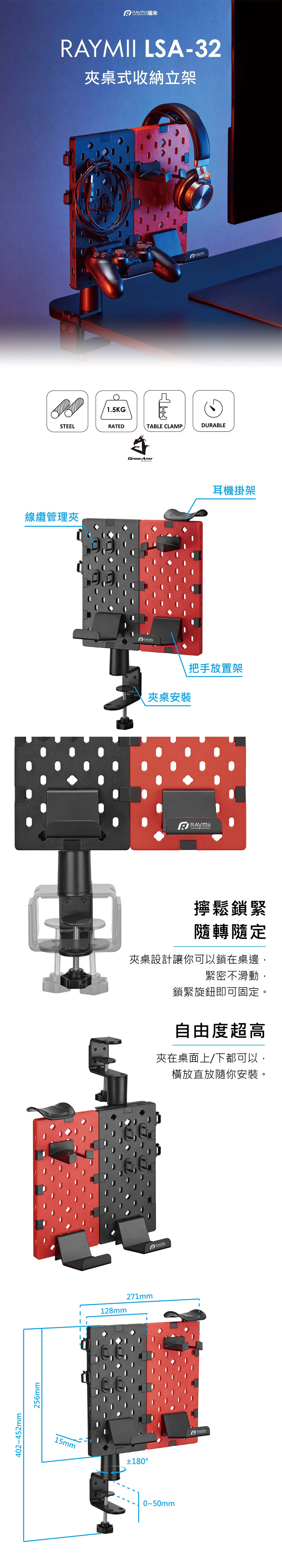 【瑞米 Raymii GameArm™ LSA-32 夾桌式 拼接 洞洞板 收納立架 耳機掛架 遊戲手把掛架】