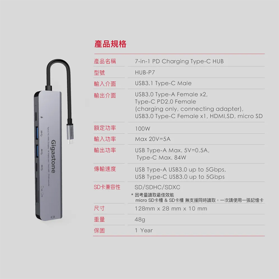 立達 7合1 Type-C Hub集線器(HUB-GAGASTONE-P7)