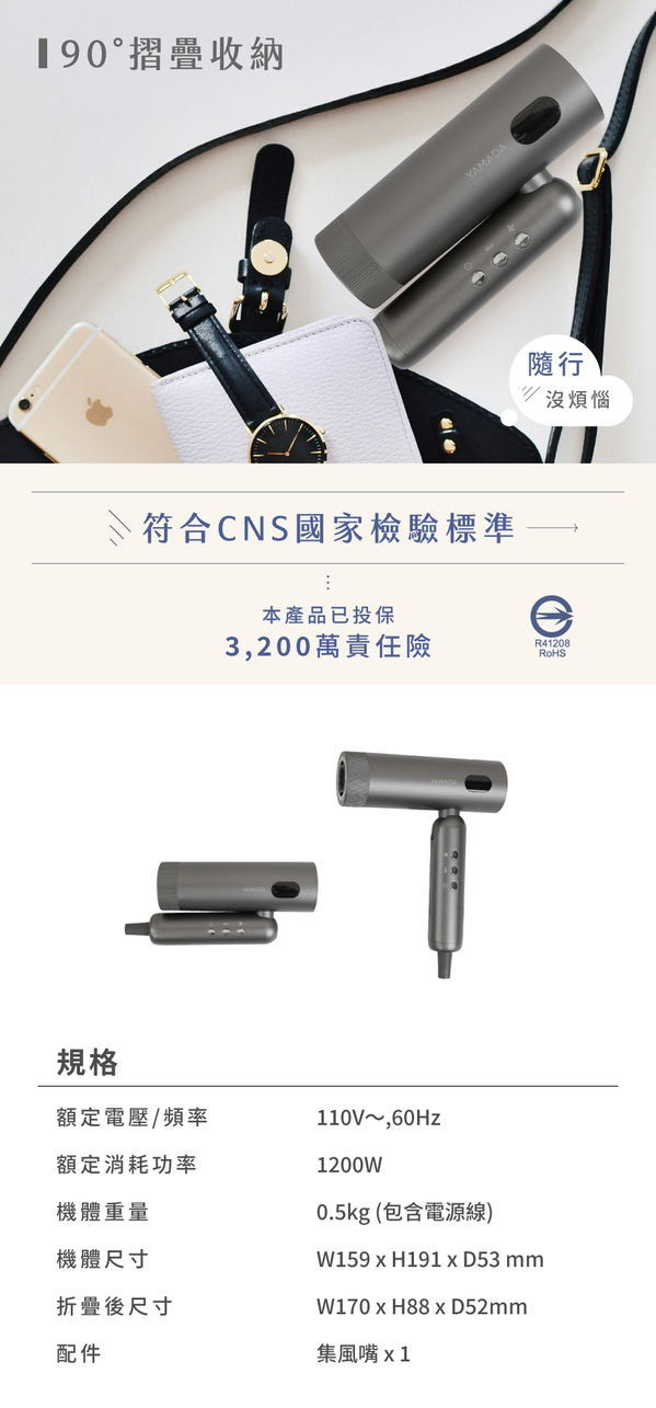 贈品-YAMADA冷熱溫控摺疊高速吹風機(YWD-06LCM1E)