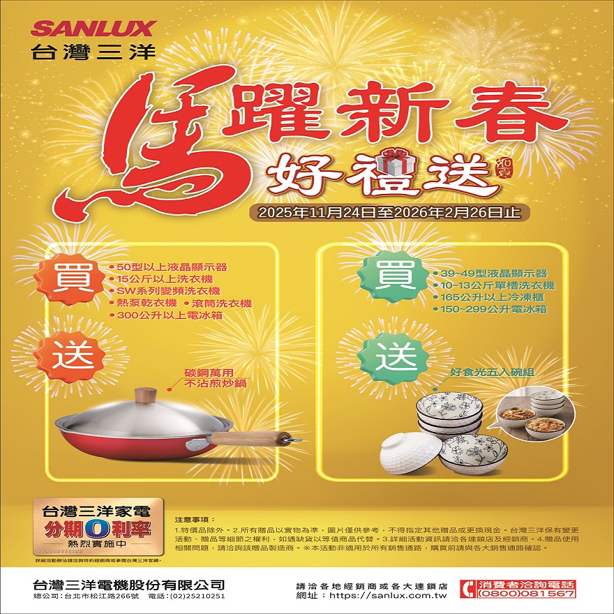 三洋系列冰箱冷凍櫃、洗衣機符合贈品贈送條件如下
